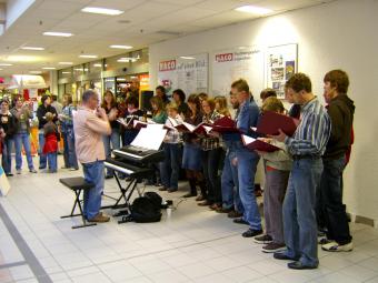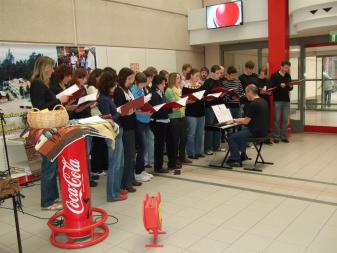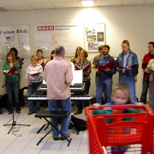 Die Drogeriemarktkette dm feierte ihr 40. Betriebsjubiläum. Da für ein "Spontankonzert" in der Filiale Wadern mehr als 100 Sänger/innen zusammenkamen, wurden jeweils 400 Euro an einen gemeinnützigen Zweck (Indenhilfe Father Mathias) als auch für unsere Kasse gespendet.